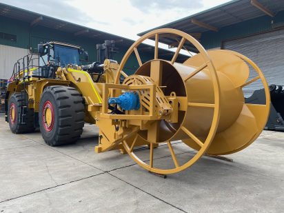 Jaws offer a range of hydraulically operated heavy duty cable reelers for the laying and retrieval of power cables for supplying power to surface and underground mining operations. Jaws cable reelers are designed for direct fit or can be mounted to the carrier by a Jaws quick hitch for front end loader or LHD host machines.